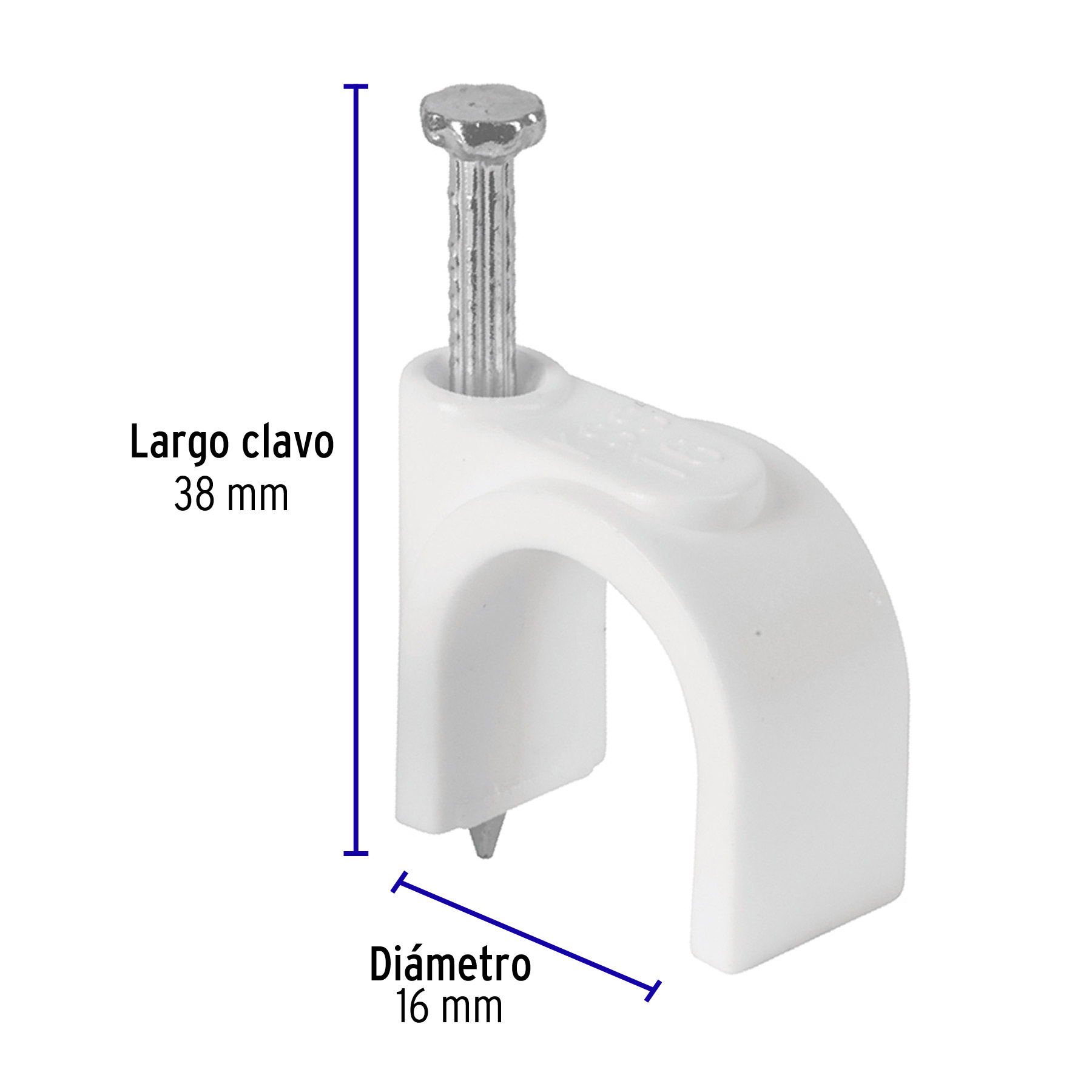 Bolsa con 20 grapas blancas de 16 mm para cable redondo 48276 cantidad