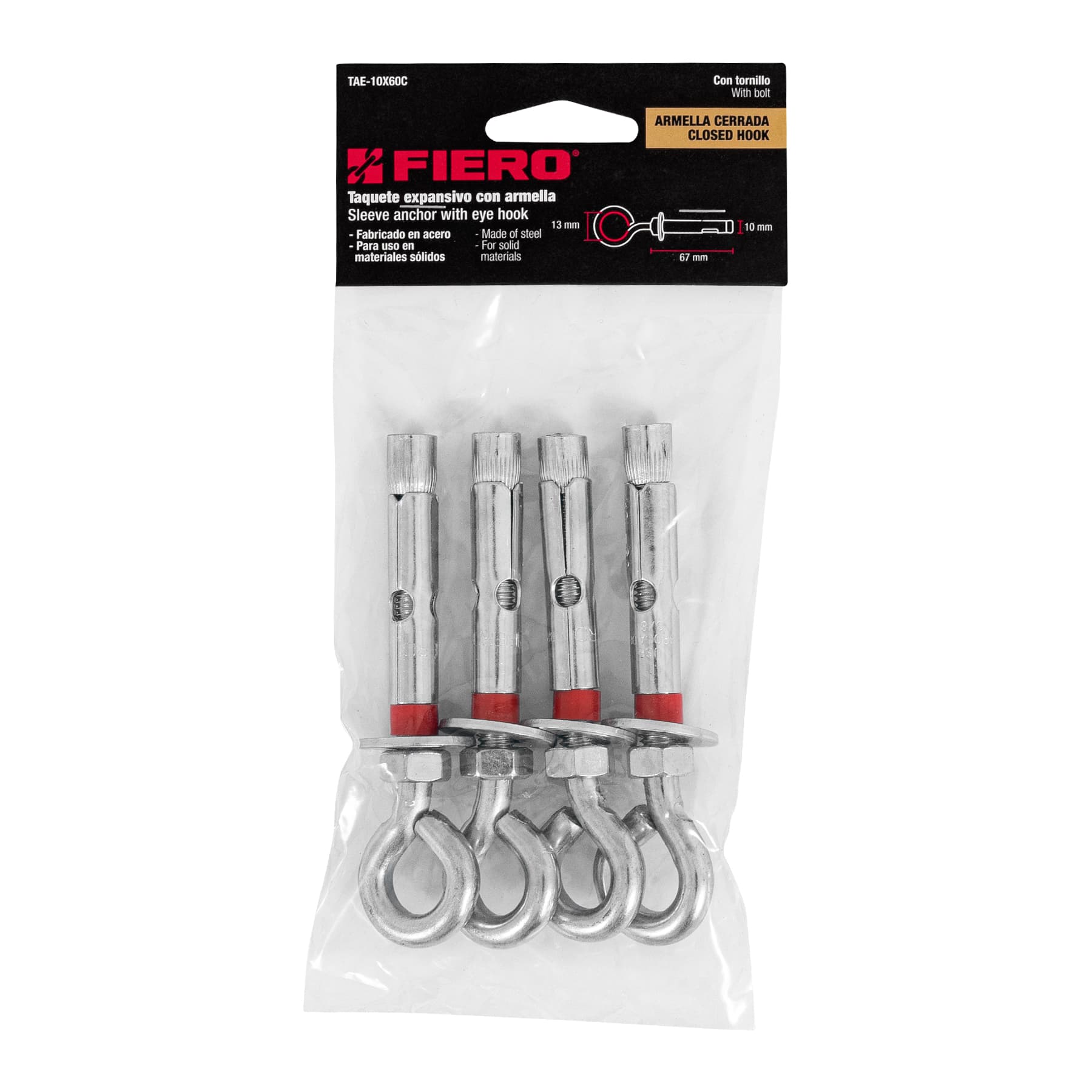 Bolsa con 4 taquetes expansivos 10×65 mm con armella cerrada 47561