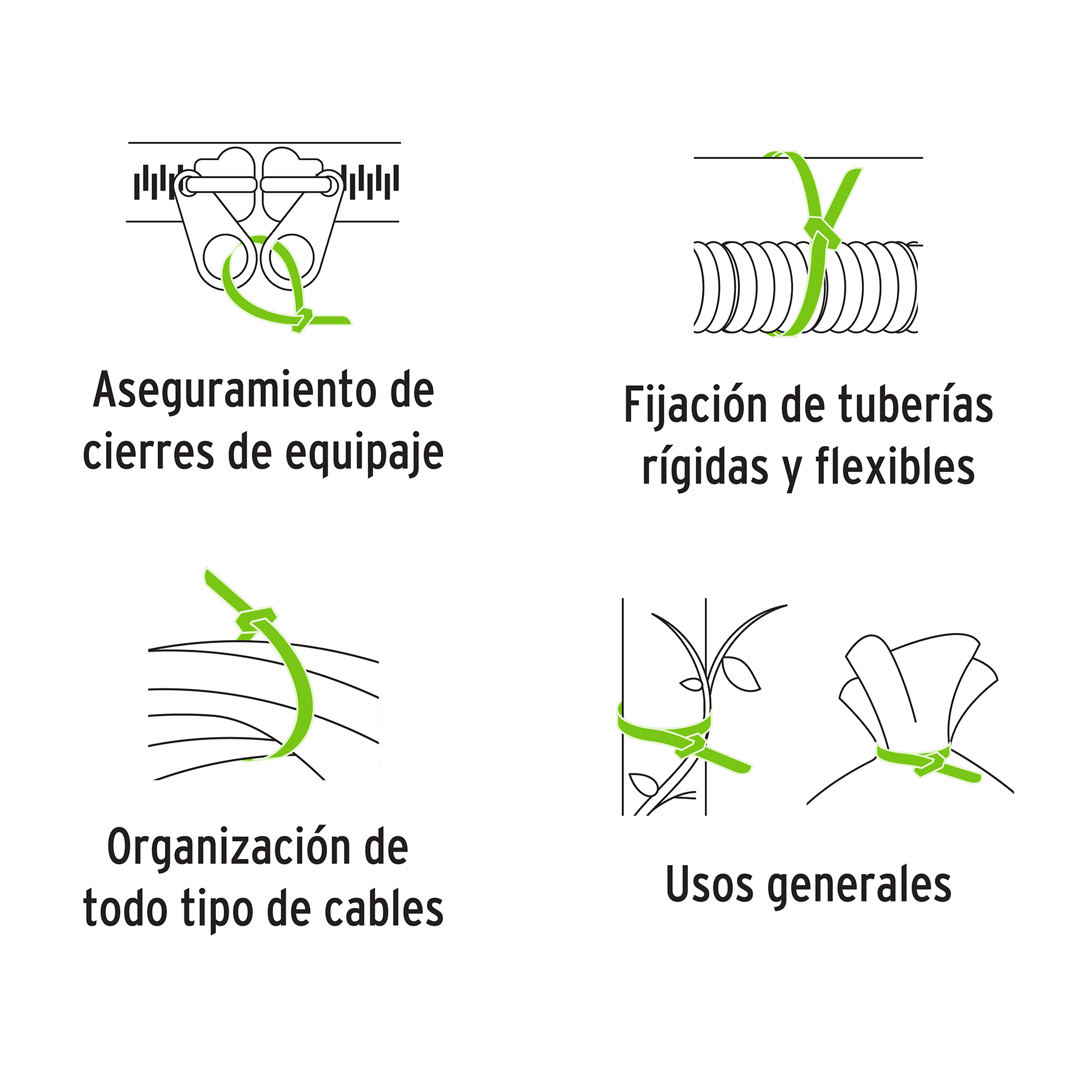 - Útiles para sujetar, amarrar y ordenar cables eléctricos u otro tipo de objetos