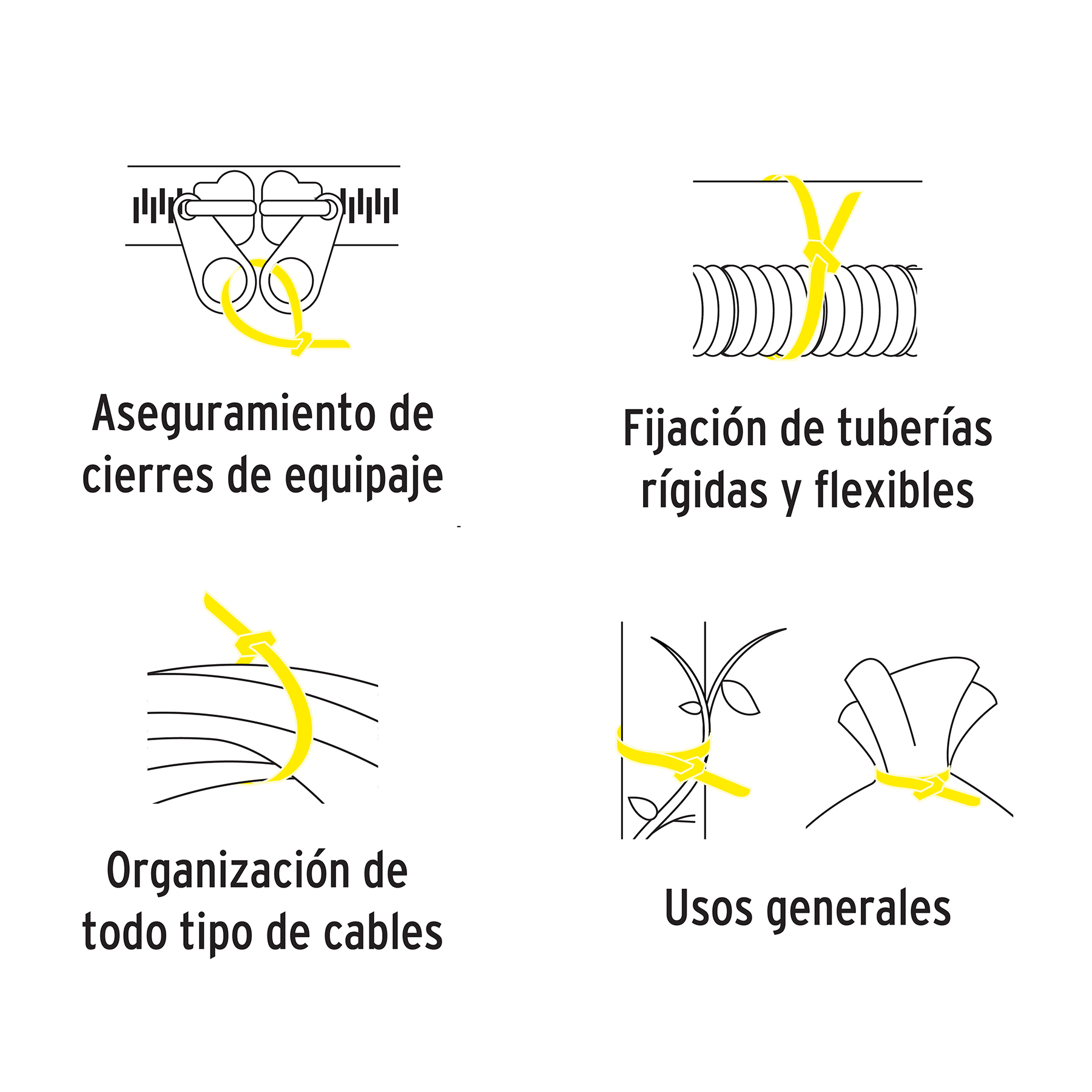 - Útiles para sujetar, amarrar y ordenar cables eléctricos u otro tipo de objetos