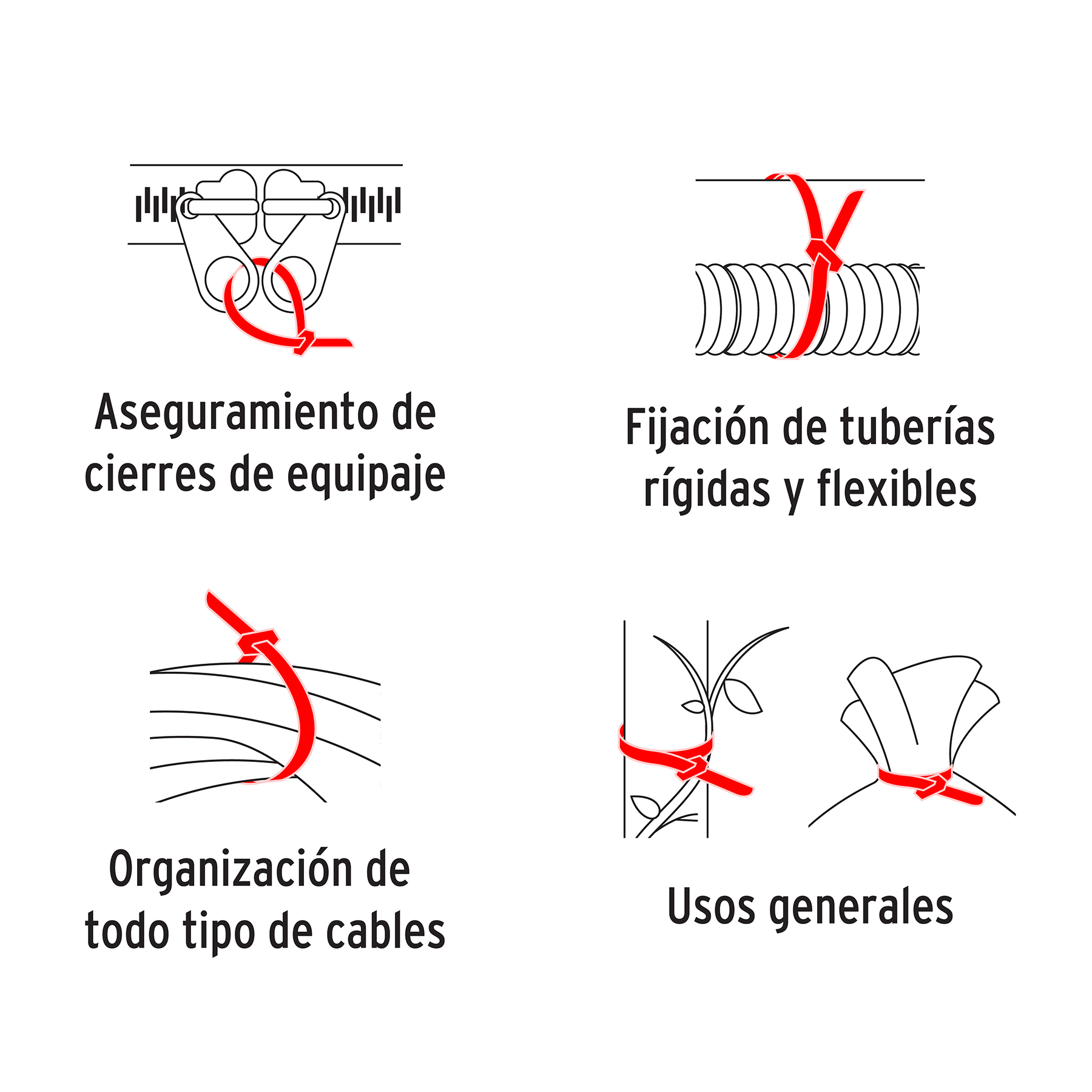 - Útiles para sujetar, amarrar y ordenar cables eléctricos u otro tipo de objetos