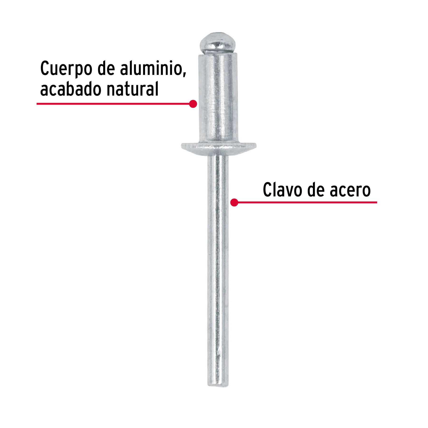 Bolsa con 50 remaches 3/16″ x 1/4″ de aluminio, ala 3/8″ 44529
