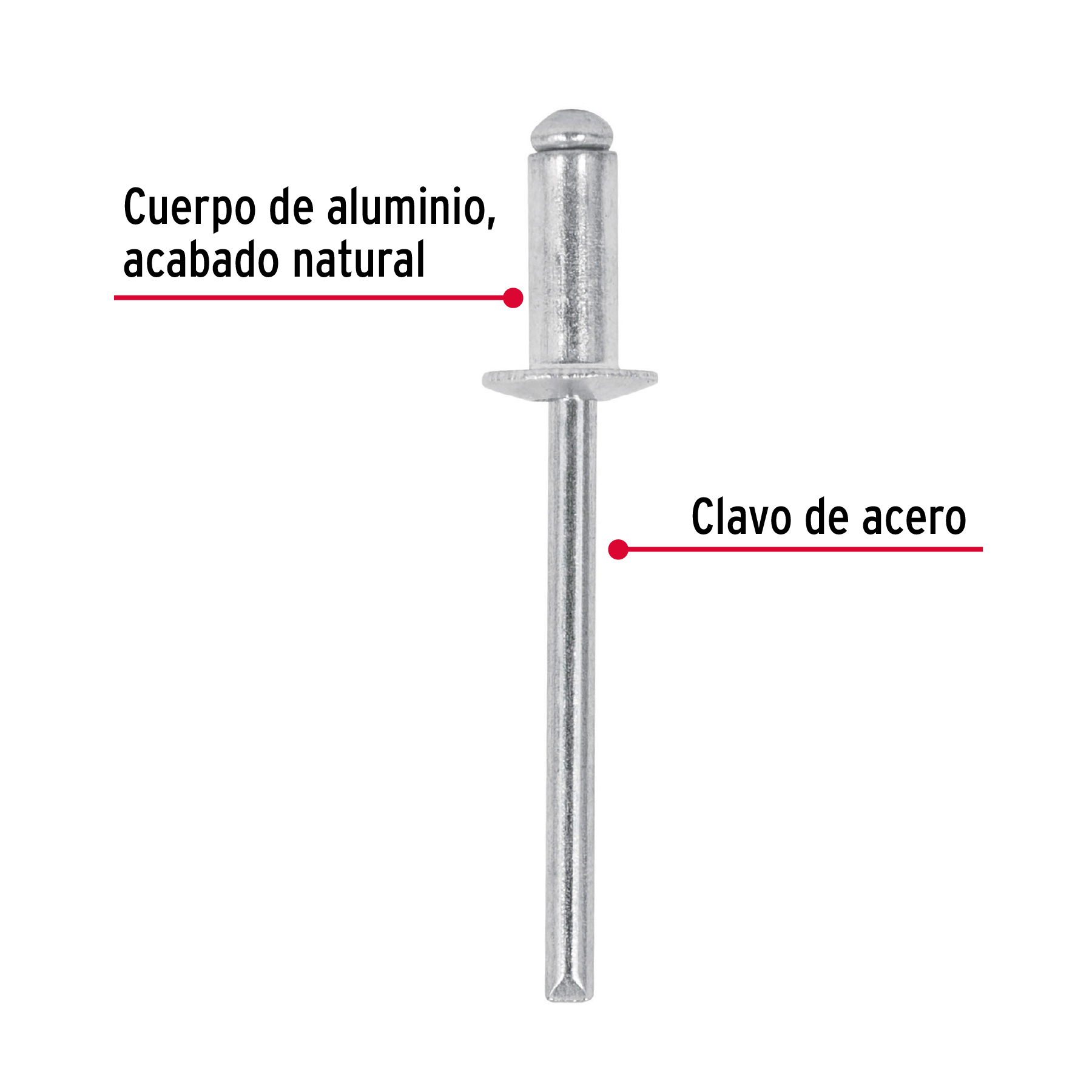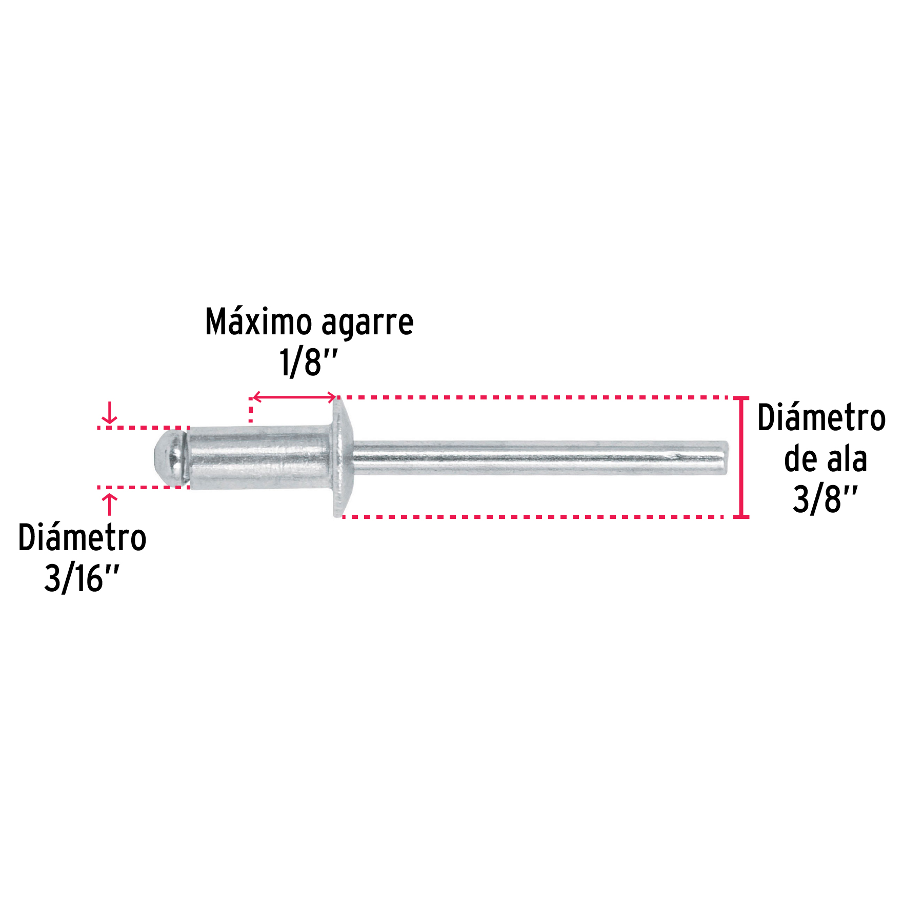 Bolsa con 50 remaches 3/16″ x 1/8″ de aluminio, ala 3/8″ 44528