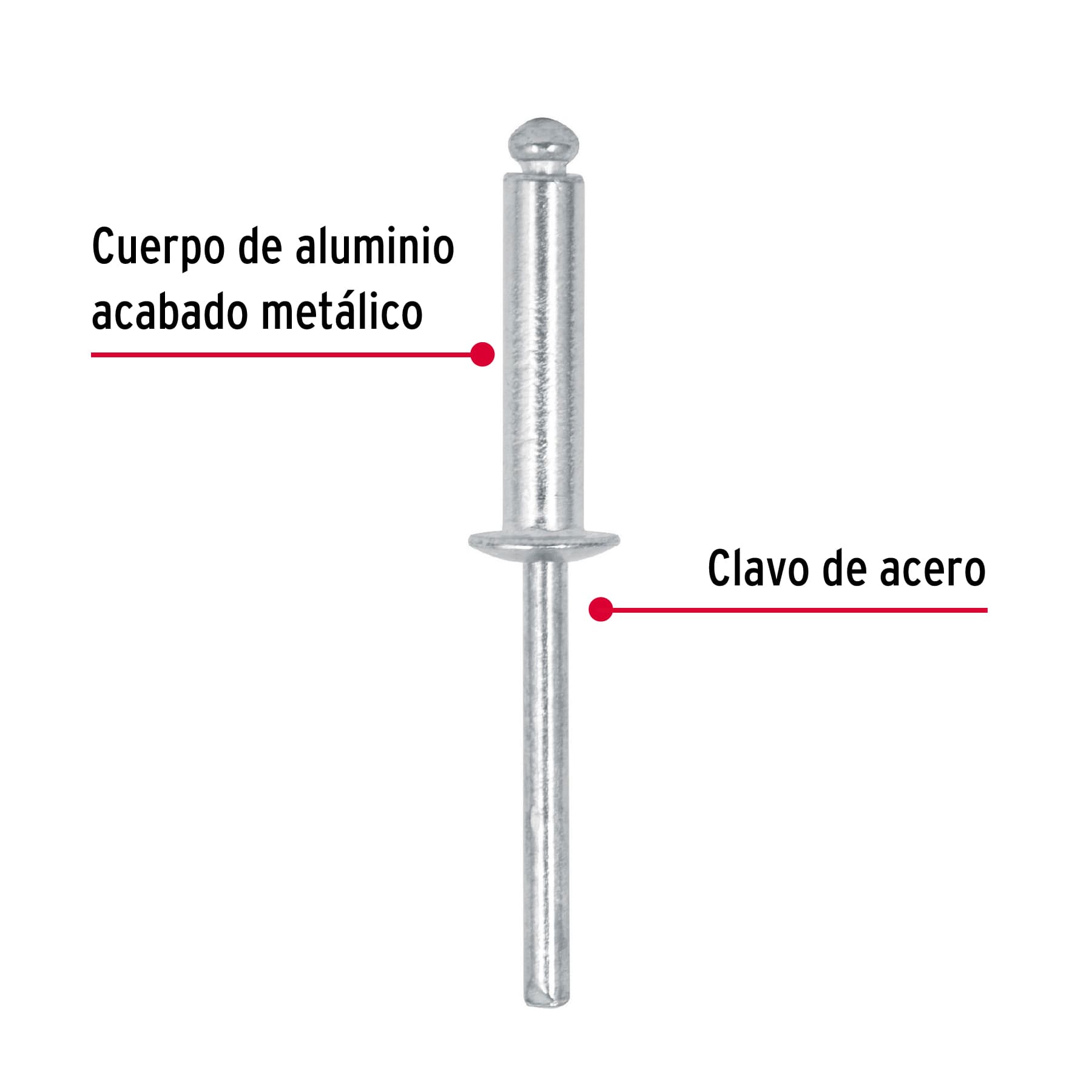 Bolsa con 50 remaches 3/16″ x 5/8″ de aluminio, ala 3/8″ 44535