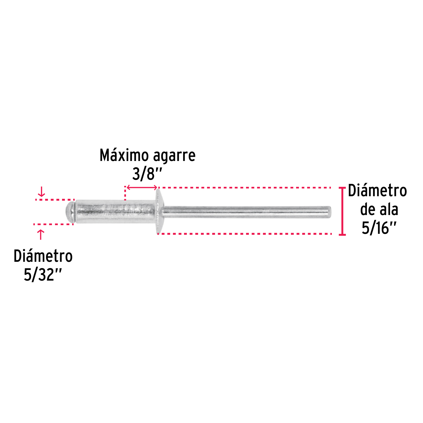 Bolsa con 50 remaches 5/32″ x 3/8″ de aluminio, ala 5/16″ 44526