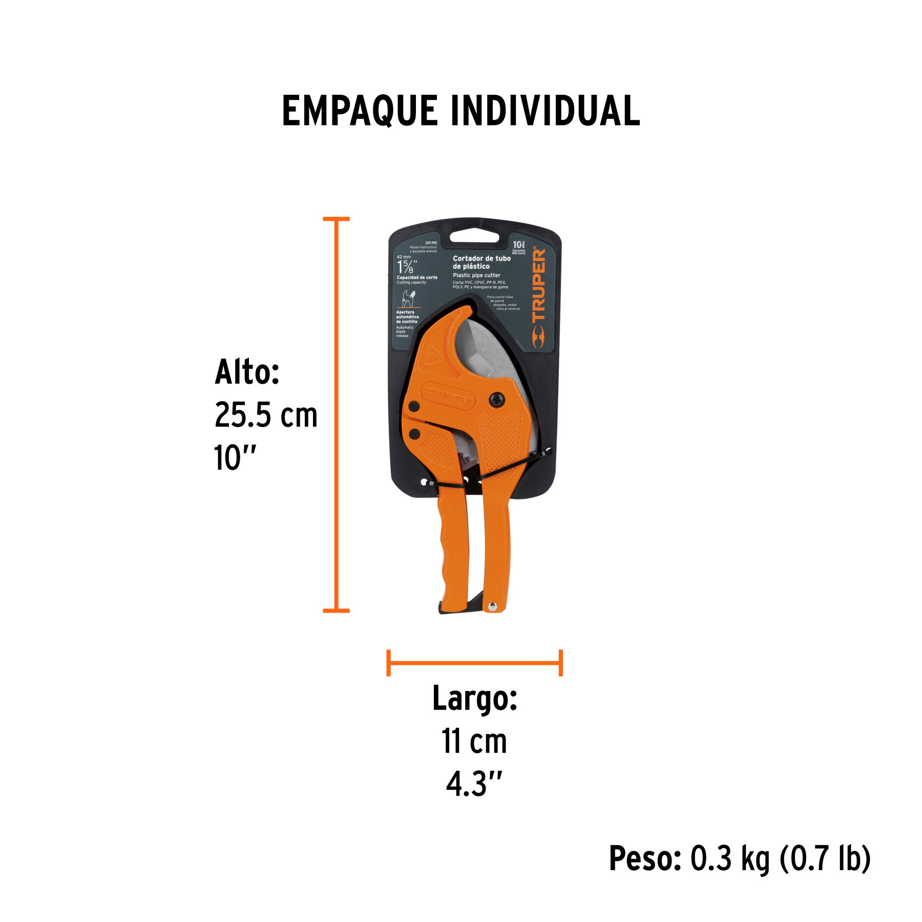 Cortador de tubo de plástico, capacidad corte 1-5/8″, Truper 12860