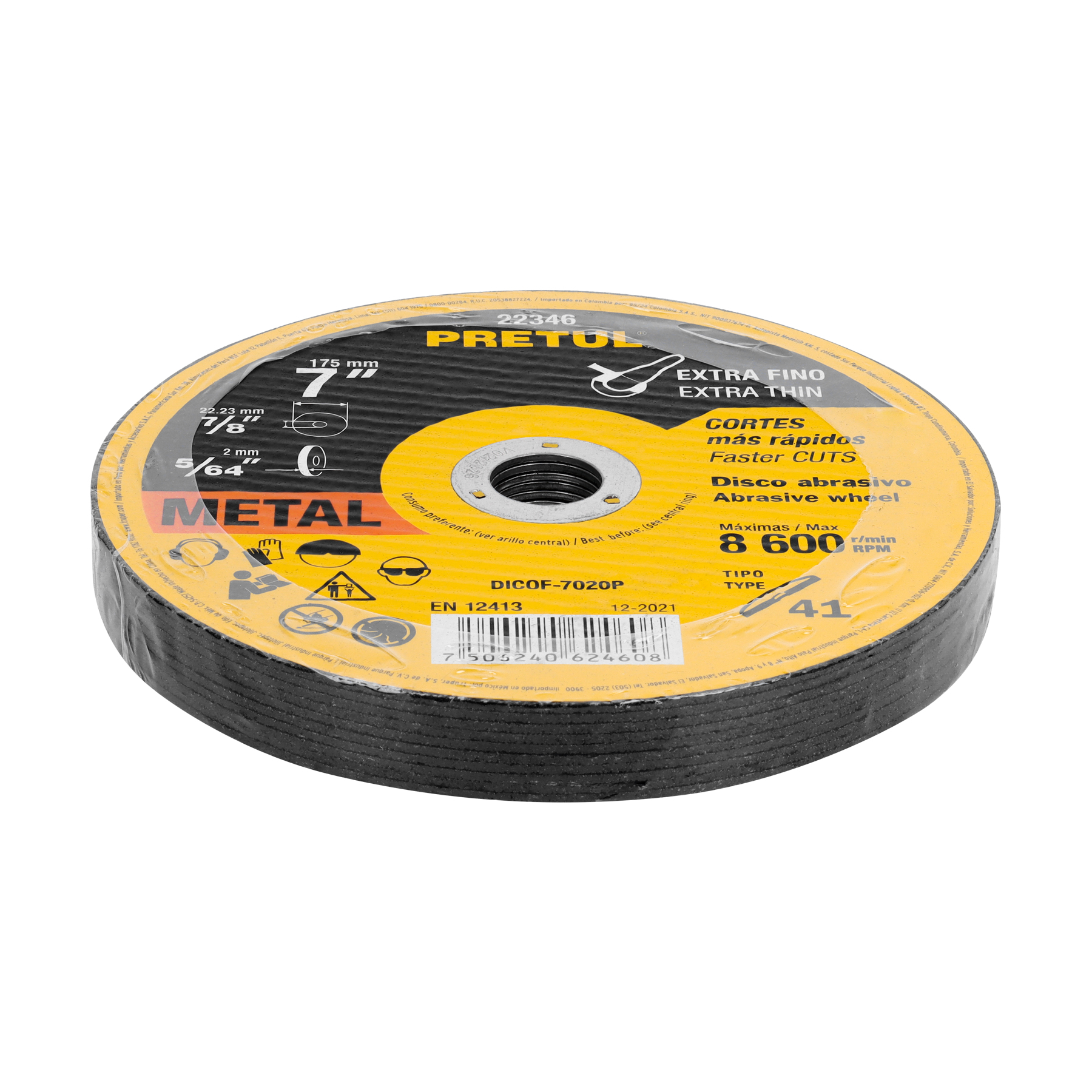 Disco Tipo 41 de 7" x 2 mm corte fino de metal, Pretul 22346 cantidad